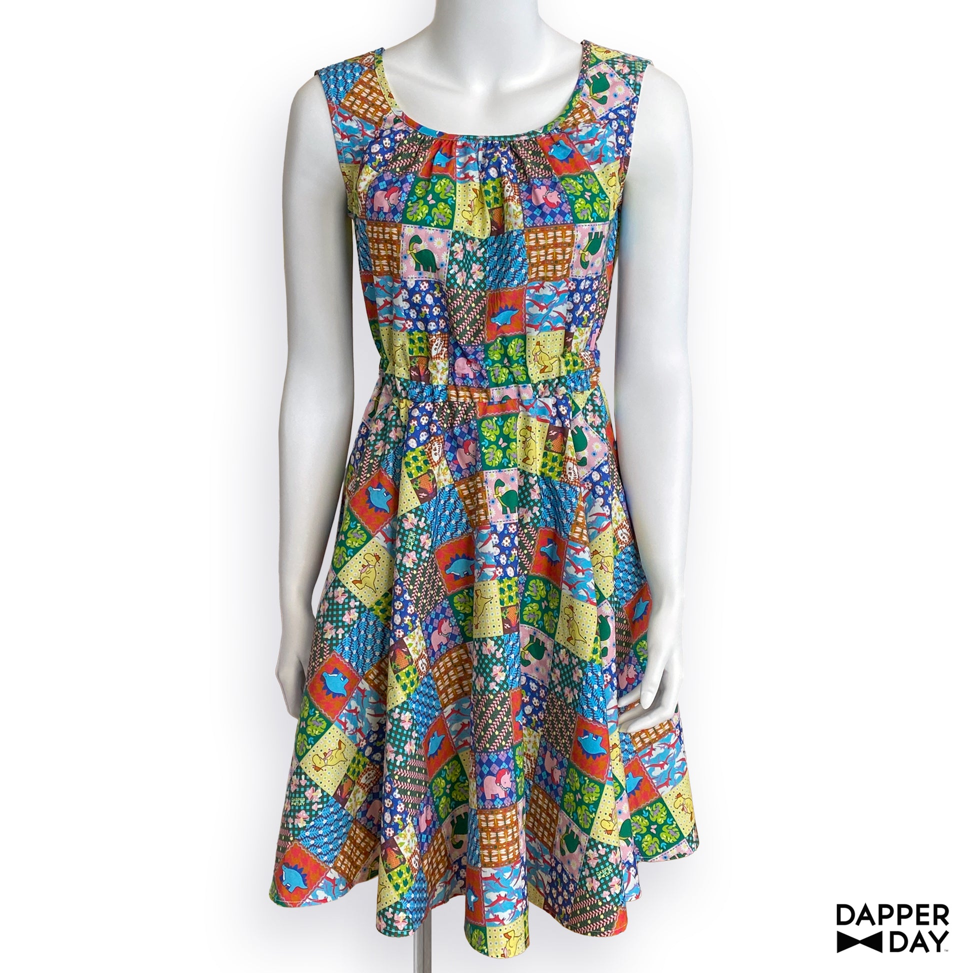 'Prehistoric Patchwork' Cotton Popover Mini Dress - Final Sale