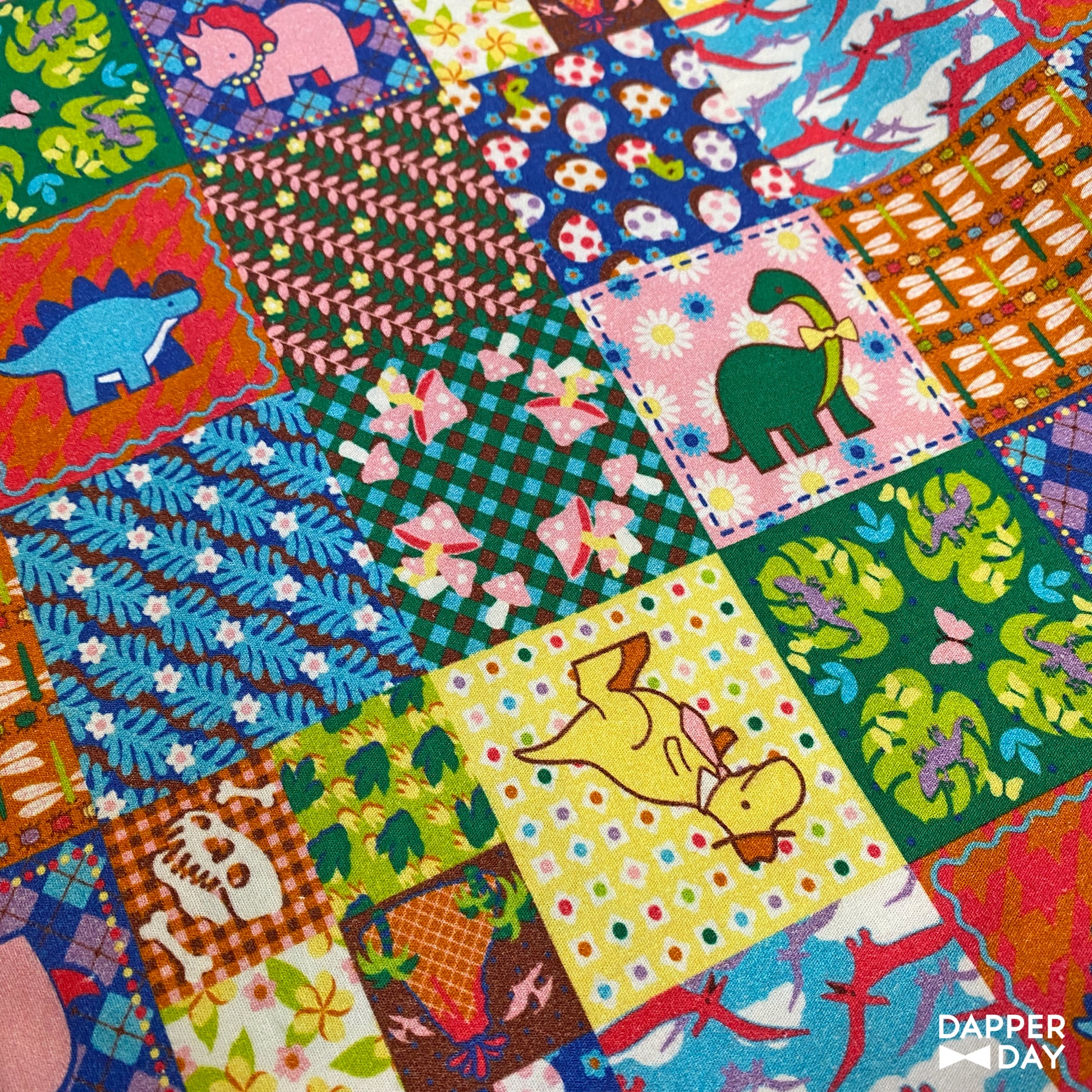 It's a Jurassic party in our original dinosaur patchwork print designed by me, Dapper Day Founder, Justin. Featuring Pterodactyls, volcanoes, Triceratops, T-rex, and more among tropical florals (and a few bugs too) - our Cretaceous cuties will get all the compliments.