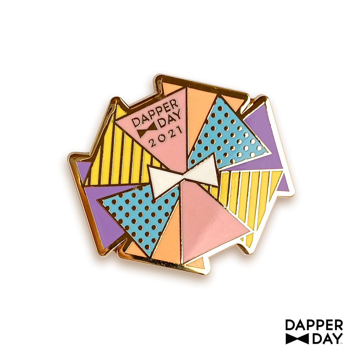 Fifth in our series of bow tie logo boutonnieres, our DAPPER DAY gold cloisonne enamel pin is a beautiful bouquet of pastels.