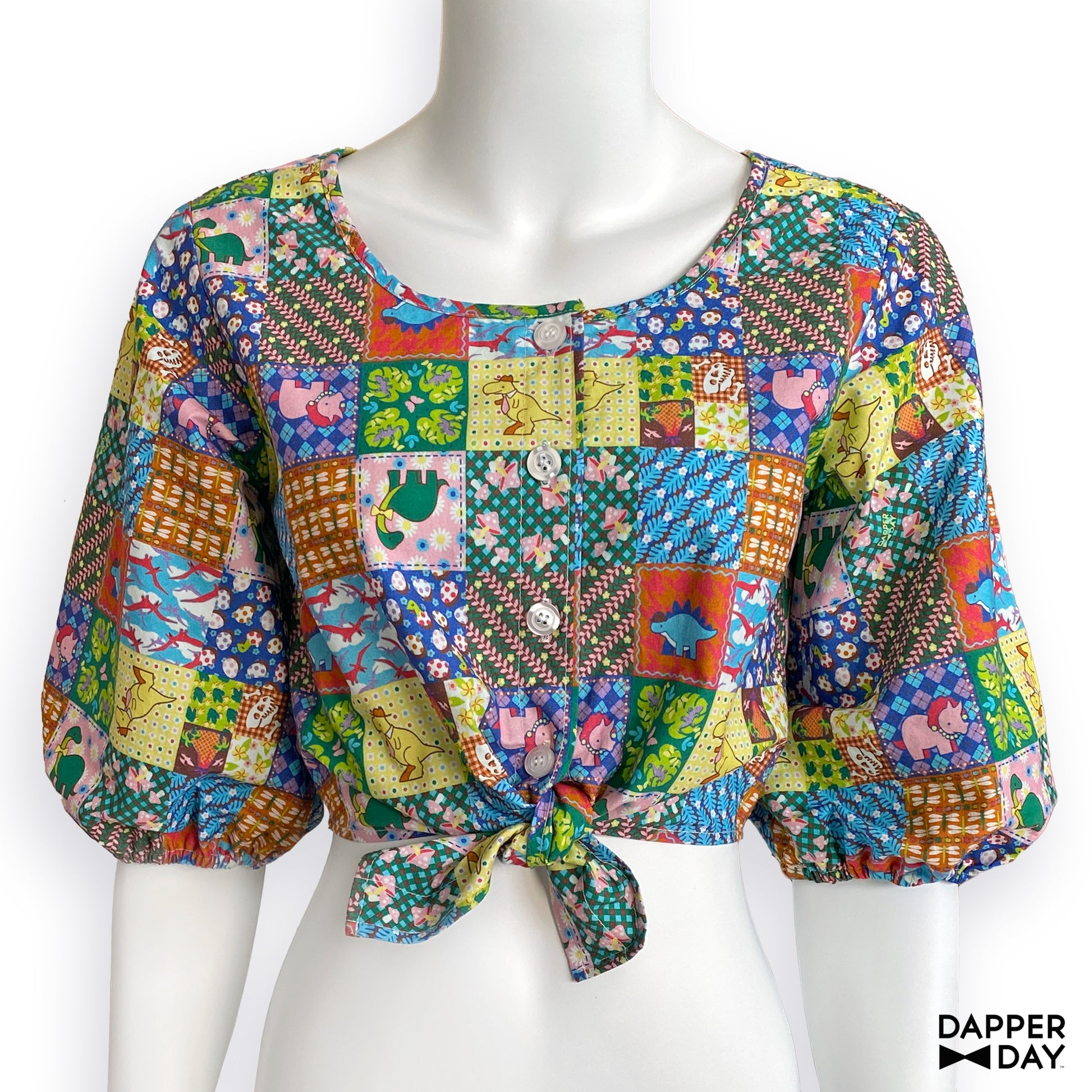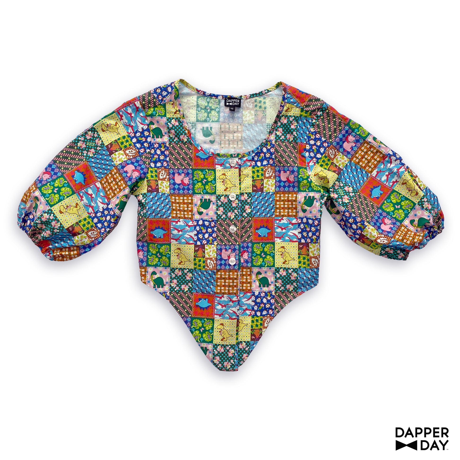 'Prehistoric Patchwork' Meadow Blouse in Cotton - Final Sale