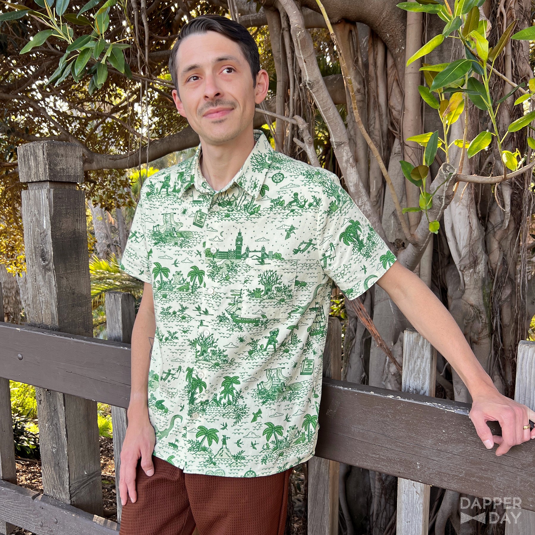 Our “Neverland Toile” in sand and green is a fan-favorite print filled with mischievous moments from J. M. Barrie's classic 1911 novel "Peter and Wendy," part of our "Neverland" collection designed with artist Jayde Cardinalli.