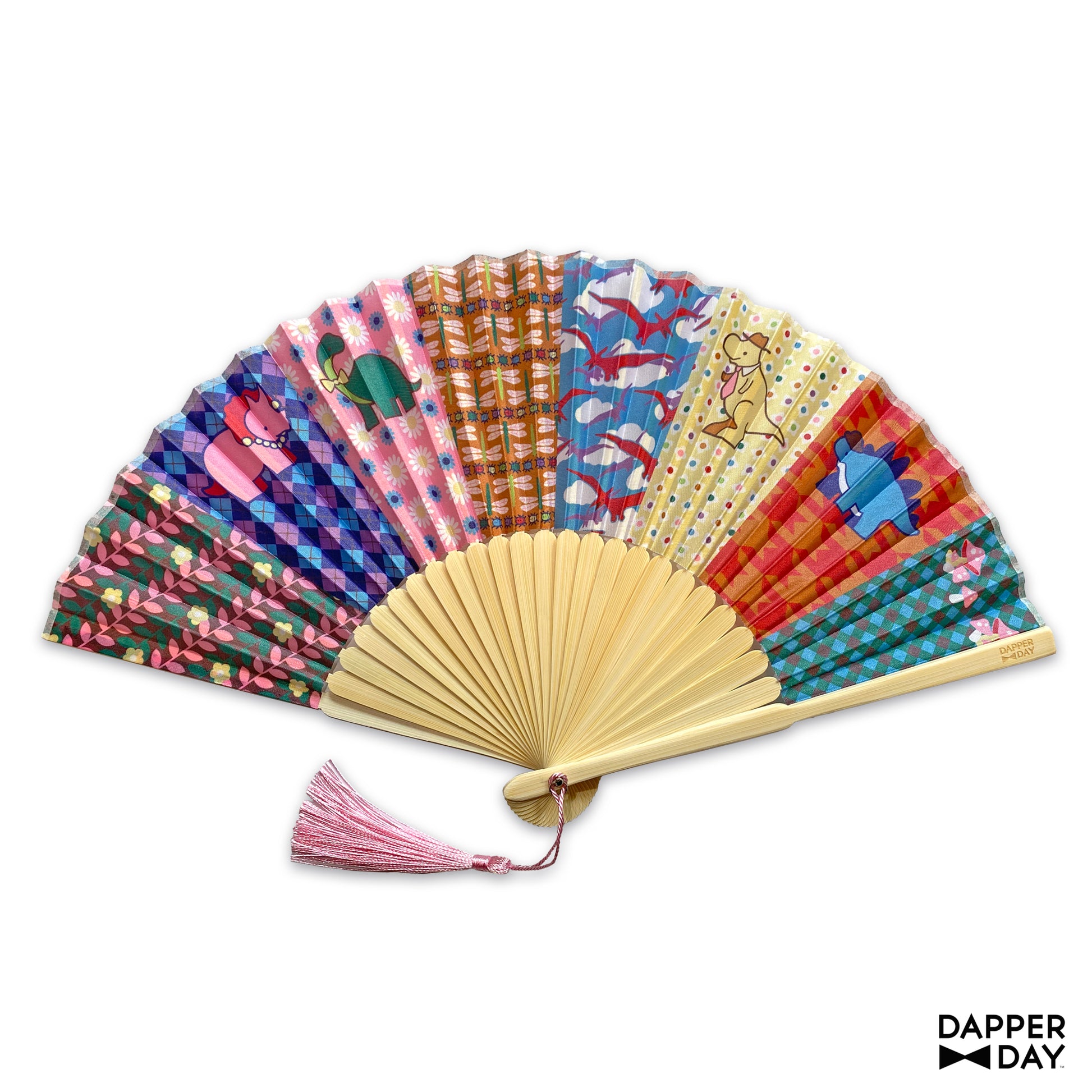 Featuring four dapper dinosaurs - T-rex, triceratops, stegosaurus, and a sweet sauropod - our original Prehistoric patchwork print will help keep you cool.